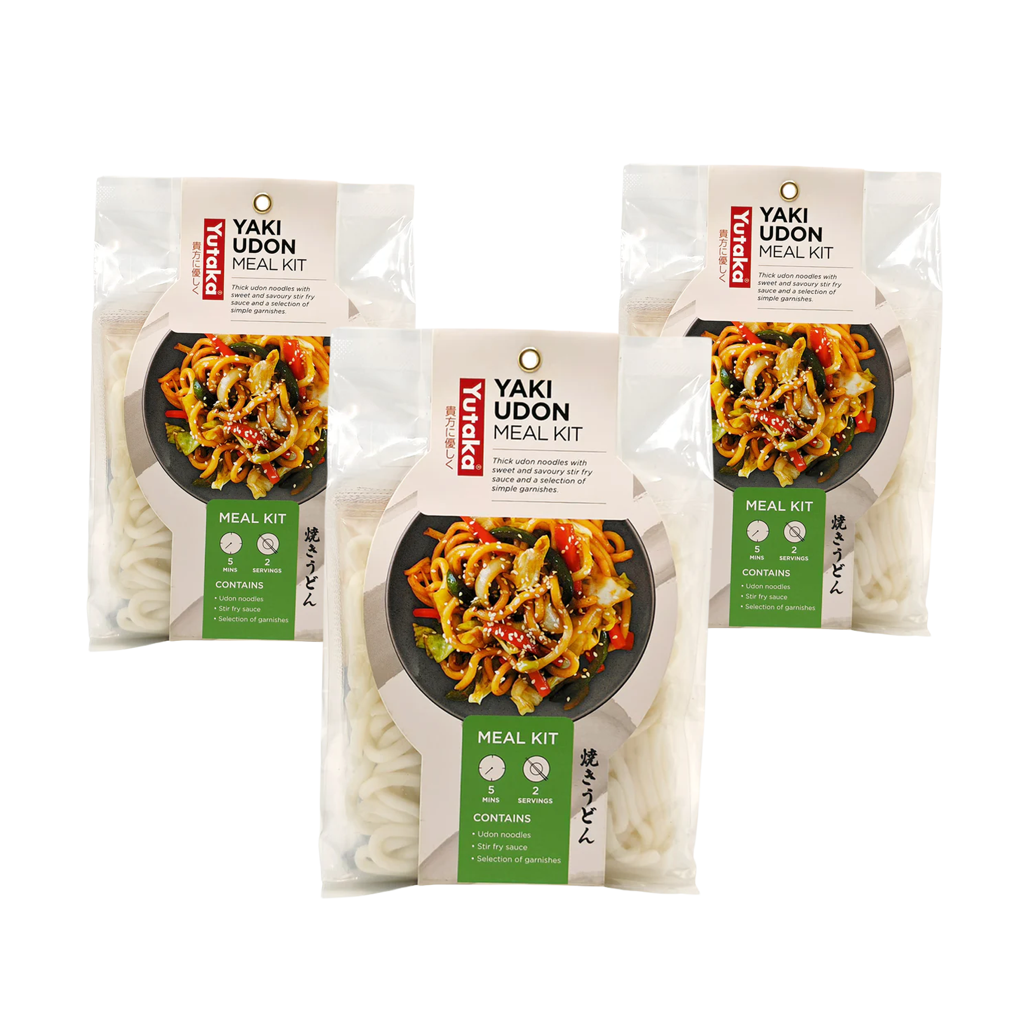 Japanese udon noodles are delicious even when stir-fried. Easily recreate Japan’s beloved Yaki Udon (stir-fried udon) at home with this convenient meal kit. Thick udon noodles with sweet and savoury stir fry sauce and a selection of simple garnishes.
